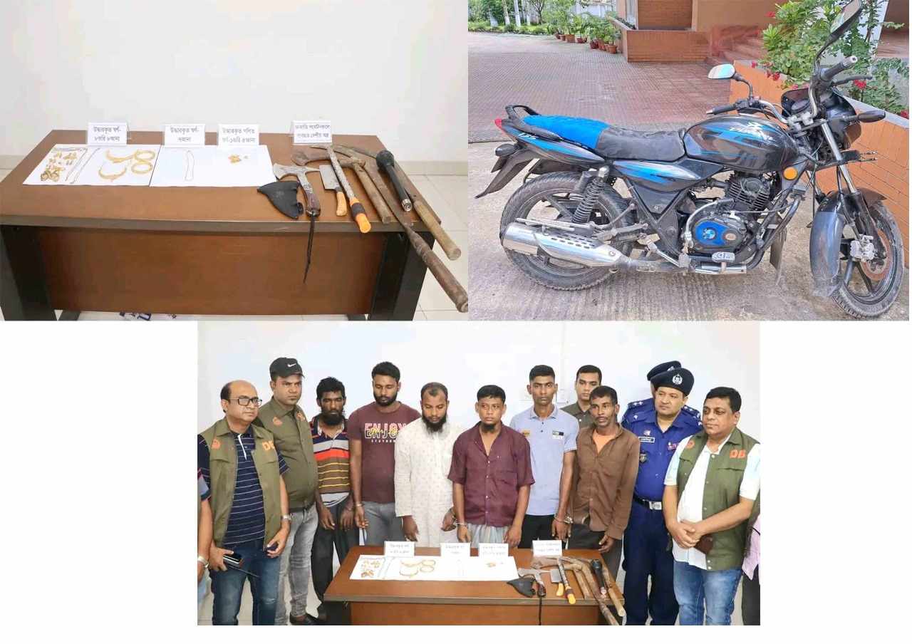 নড়াইলে ডাকাত চক্রের ৬ সদস্যকে গ্রেফতার করেছে নড়াইল জেলা পুলিশ। এসময় ডাকাতিতে ব্যবহৃত মোটরসাইকেল ও দেশীয় অস্ত্র জব্দ করা হয়েছে। রোববার জেলার নড়াগাতি এলাকায় দ্বিতীয় দফা ডাকাতিকালে পুলিশের হাতে গ্রেফতার হন ডাকাত দলের সদস্যরা। সোমবার (৮ জুলাই) নড়াইল জেলা পুলিশের সম্মেলন কক্ষে পুলিশ সুপার মোহা. মেহেদী হাসান সংবাদ সম্মেলনে এসব তথ্য জানান।