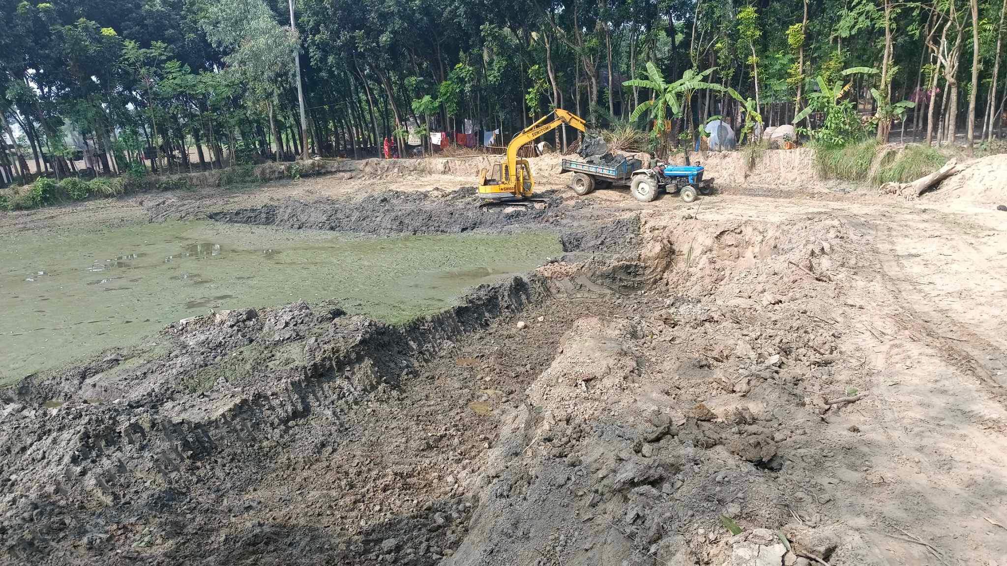 নওগাঁর দুবলহাটিতে পুকুর সংস্কারের নামে চলছে মাটি বিক্রি