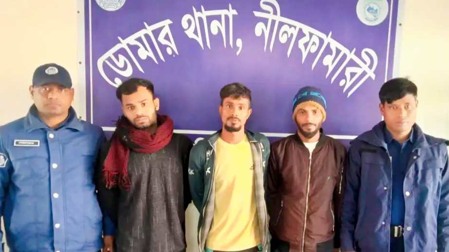 সোমবার (৩রা ফেব্রুয়ারী) রাত সাড়ে ৮টার দিকে ডোমার এশিয়ান হাইওয়ের বাইপাস রেলগেট এলাকায় তিনজনকে গ্রেপ্তার করা হয়। মঙ্গলবার (৪ঠা জানুয়ারী) গ্রেপ্তারকৃতদের আদালতে সোপর্দ করা হয়েছে।