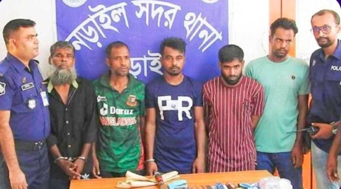 নড়াইল জেলা প্রতিনিধি: নড়াইল সদর উপজেলায় ডাকাতির প্রস্তুতিকালে ৫ জনকে গ্রেফতার করেছে পুলিশ। এ সময় তাদের কাছ থেকে ডাকাতির নানা সরঞ্জমা উদ্ধার করা হয়। শুক্রবার (২৬ জুলাই) গভীর রাতে সদর