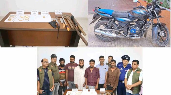 নড়াইল জেলা প্রতিনিধি: নড়াইলে ডাকাত চক্রের ৬ সদস্যকে গ্রেফতার করেছে নড়াইল জেলা পুলিশ। এসময় ডাকাতিতে ব্যবহৃত মোটরসাইকেল ও দেশীয় অস্ত্র জব্দ করা হয়েছে। রোববার জেলার নড়াগাতি এলাকায় দ্বিতীয় দফা ডাকাতিকালে